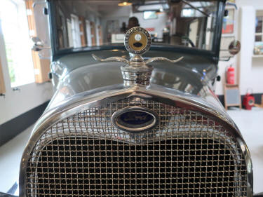 A-Ford-radiatorgrille loopt een kwartier voor. Aan de muur hangen verder