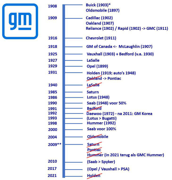 Tijdlijn van General Motors en de verschillende merken